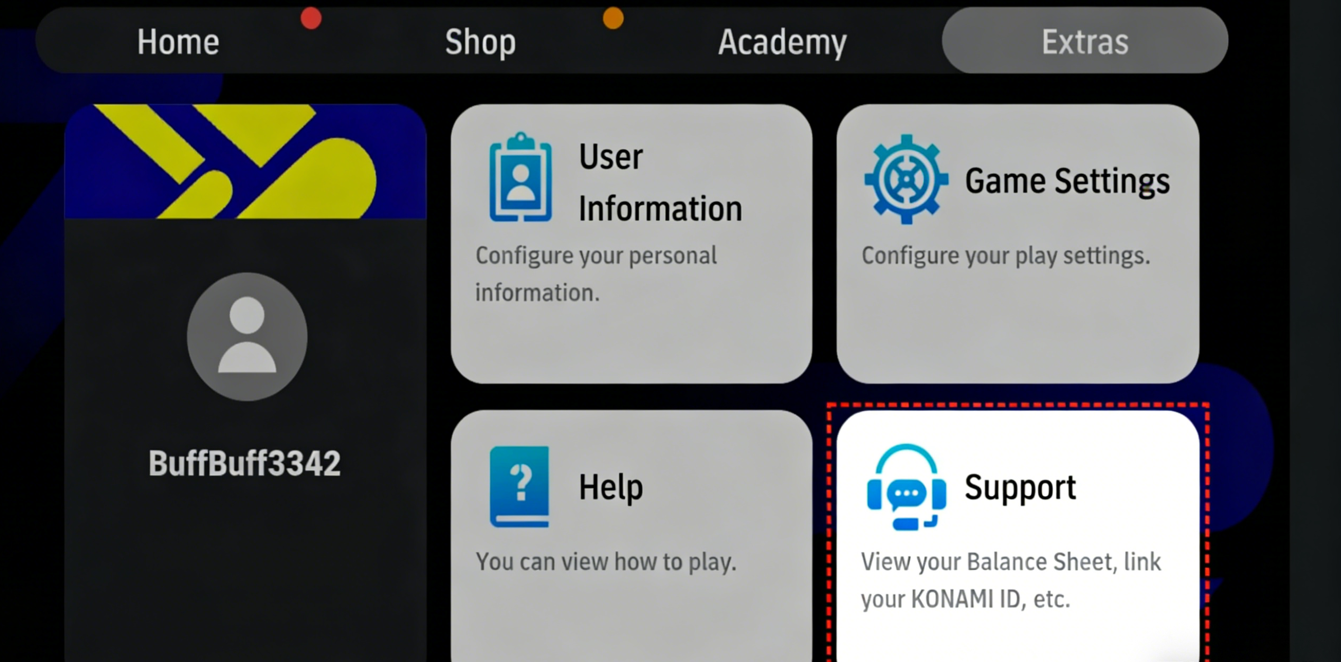 معرف اللعبة (Gameuid): معرف كونامي (Konami ID) الخاص بك.