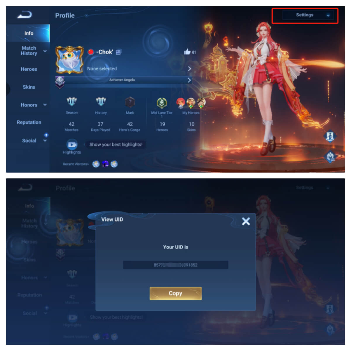 كيفية العثور على معرف المستخدم الخاص بك في لعبة Honor of Kings