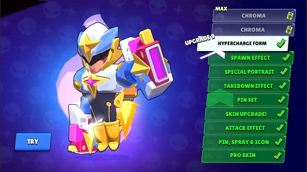 The first Pro Skin will be Colt’s Astral Colt skin, which comes with exclusives like Pin, Profile Picture, Spray, Special Attack effects, eight Pins, Special Takedown effects, an animated Brawler Card, Special Spawn, Respawn effects, Ultra Astral Colt skin, and two Chromas for the Ultra Colt, Guardian Colt and Hyperion Colt. Plus, you can choose which upgrade level of skin to play.
