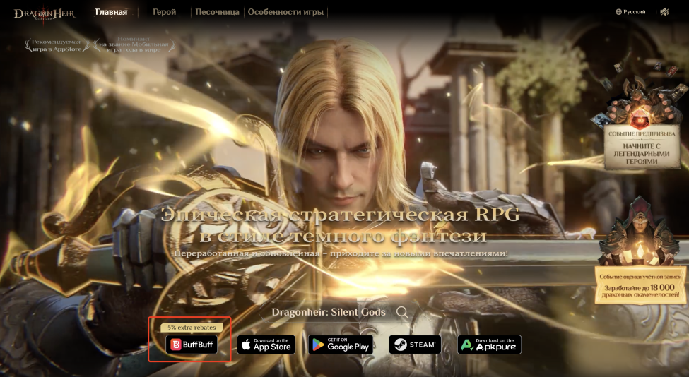 At the same time, BuffBuff has an official partnership with the newly released game Dragonheir: Silent Gods (Dragonstride: Legacy Reborn). We are the only official mall partner in the Russian region, as shown on the official game website.