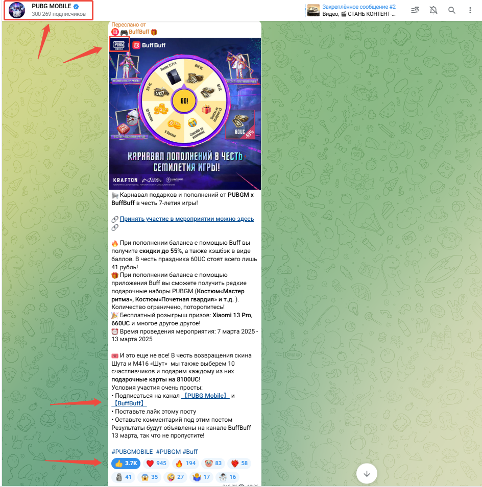 Moreover, BuffBuff has also received support and recommendations from the official PUBG Mobile team. Each season, there are community campaigns in collaboration with PUBG M, allowing many players to enjoy this convenient and affordable top-up channel. For example, the image below shows the collaboration event celebrating the 7th Anniversary of PUBG Mobile.