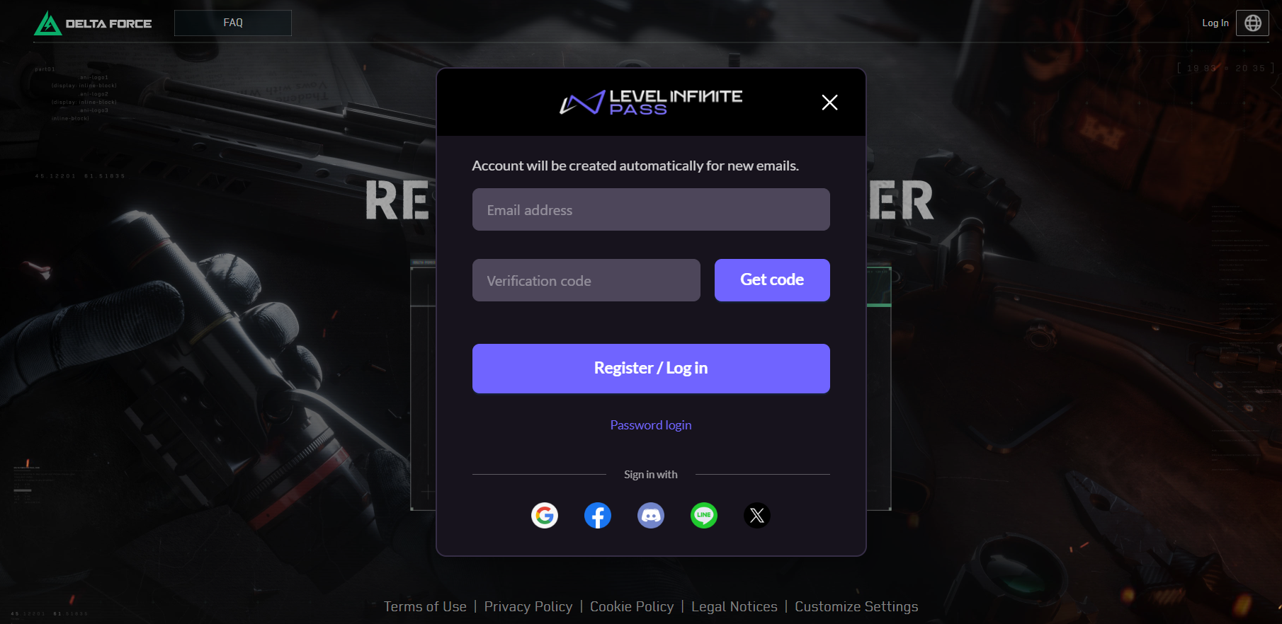 2. Log in to your Garena or LevelInfinite Pass account linked to your Delta Force account.