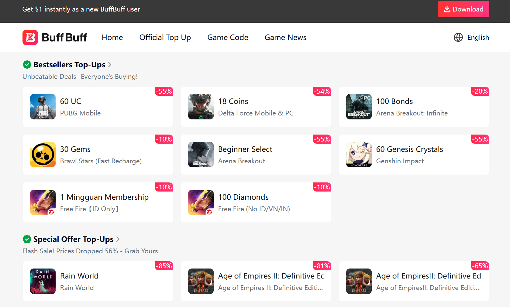 On the web version of BuffBuff, you can also find many redeem codes for a variety of games. BuffBuff has a mobile app too, which not only allows you to purchase game items easily, but also download game applications without any restriction.