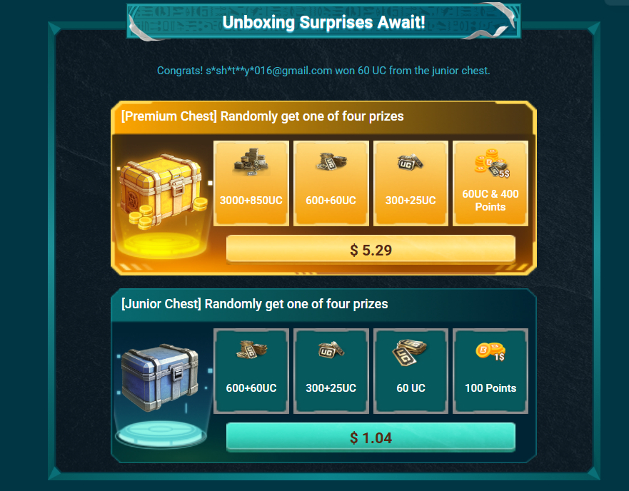 - 💎 $1 Chest – chance to win up to 660 UC!