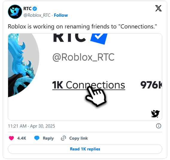 Roblox seems to be testing a rename of its “Friends” feature, rebranding this feature as “Connections.” Though still hidden behind the scenes, this change could shift how players discover and team up to play their favorite Roblox games, giving the feature a fresh coat of paint without altering its core function. This change could leave some of the younger players confused, as “Connections” doesn’t carry the same obvious meaning as the previous name of this feature.