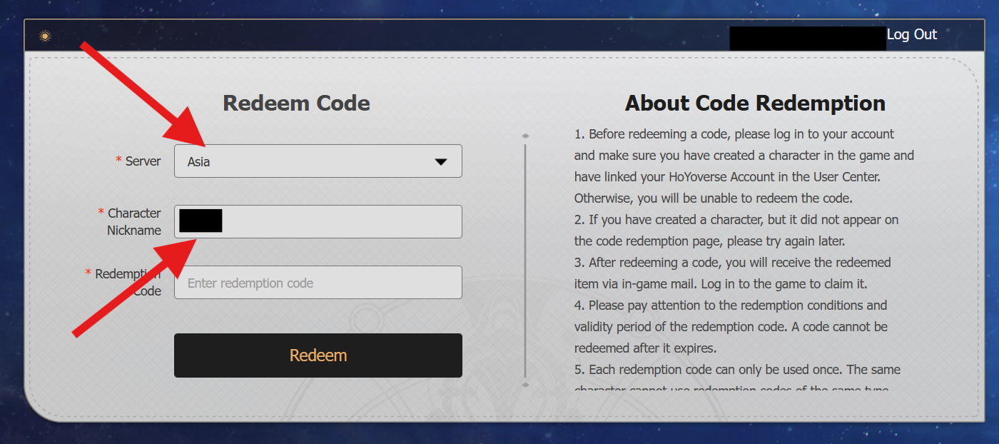 Luego, puedes canjear códigos a través del portal en línea de HoYoverse:
