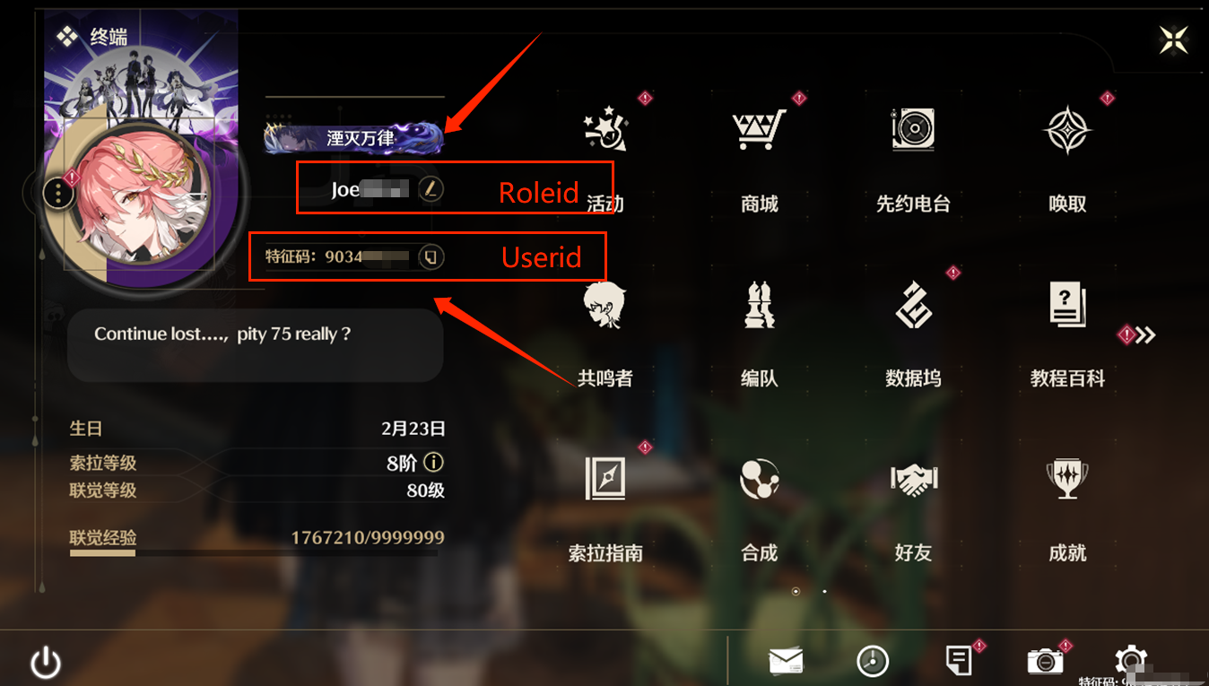 Luncurkan game dan temukan User id dan Role id Anda di dalam antarmuka game.