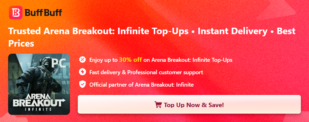 A BuffBuff às vezes mantém parcerias com as desenvolvedoras oficiais dos jogos, podendo obter códigos exclusivos. Você pode salvar esta página para acompanhar os códigos de recompensa mais recentes de Arena Breakout Infinite. Enquanto isso, se você não quiser esperar até a próxima segunda-feira e não se importar em gastar um pouco, também é possível fazer uma recarga de Arena Breakout Infinite aqui na BuffBuff.