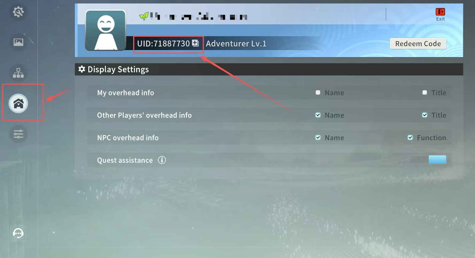 Passo 4: Clique no ícone de “Casa” para abrir as Configurações de Conta. Aqui você encontra o UID da sua conta.![]()