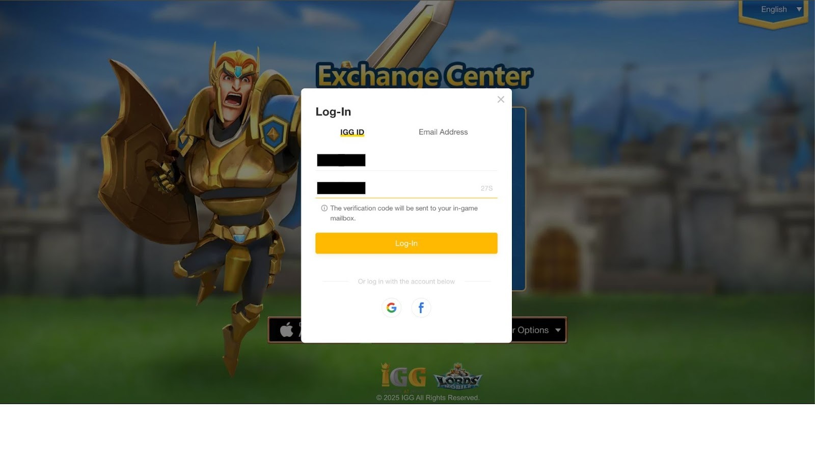 Passo 3: Insira o IGG ID copiado no campo de login para verificar sua conta.