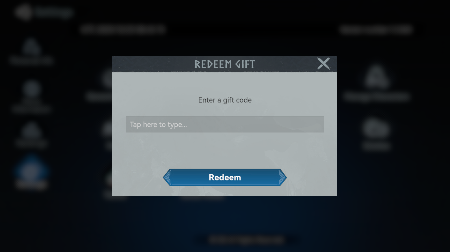Passo 5: Insira seu código exclusivo de Viking Rise no campo indicado e toque em Resgatar.