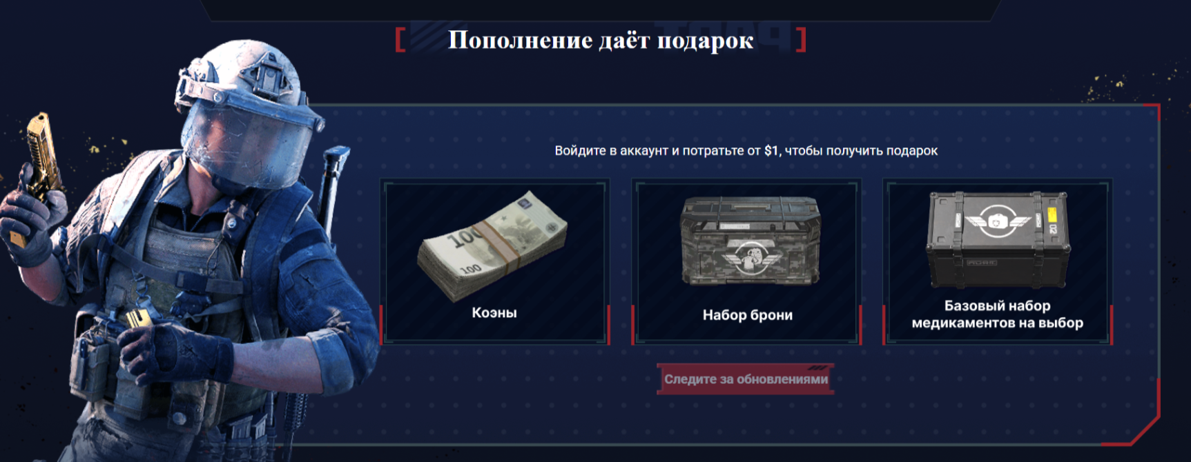 Пополняйте счёт и получайте Монеты Коэны,Базовый набор медикаментов на выбор,Набор брони! Количество ограничено — успей первым!