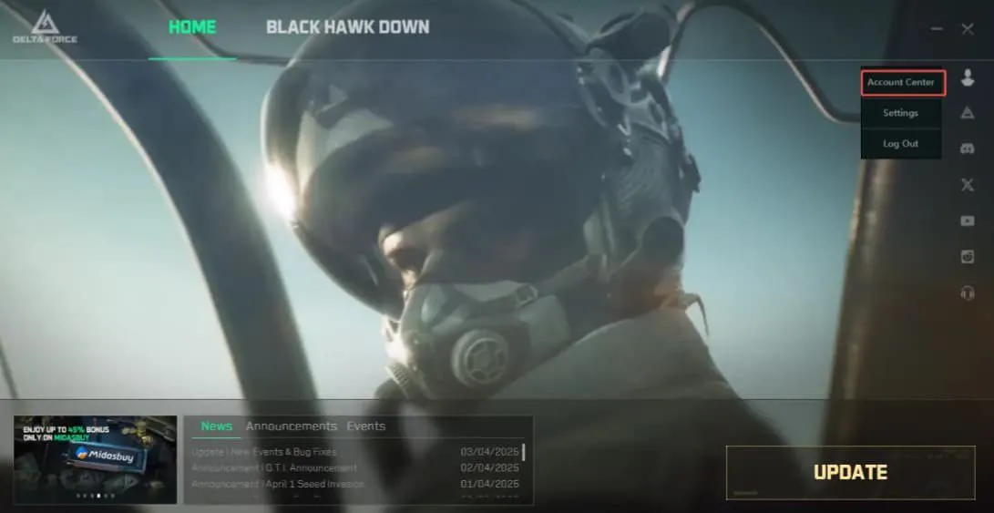 - - Откройте лаунчер Delta Force на ПК и перейдите в раздел Account Center.