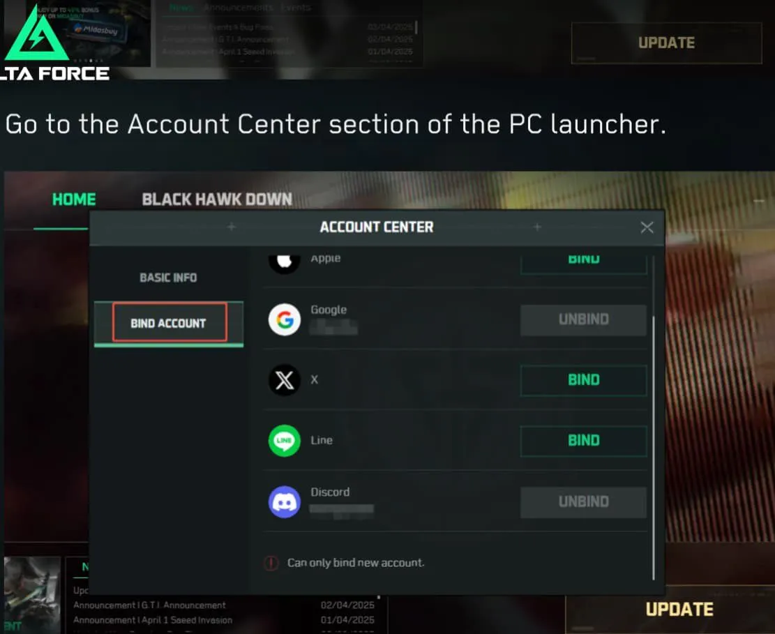 Что нужно помнить при привязке аккаунта в Delta Force