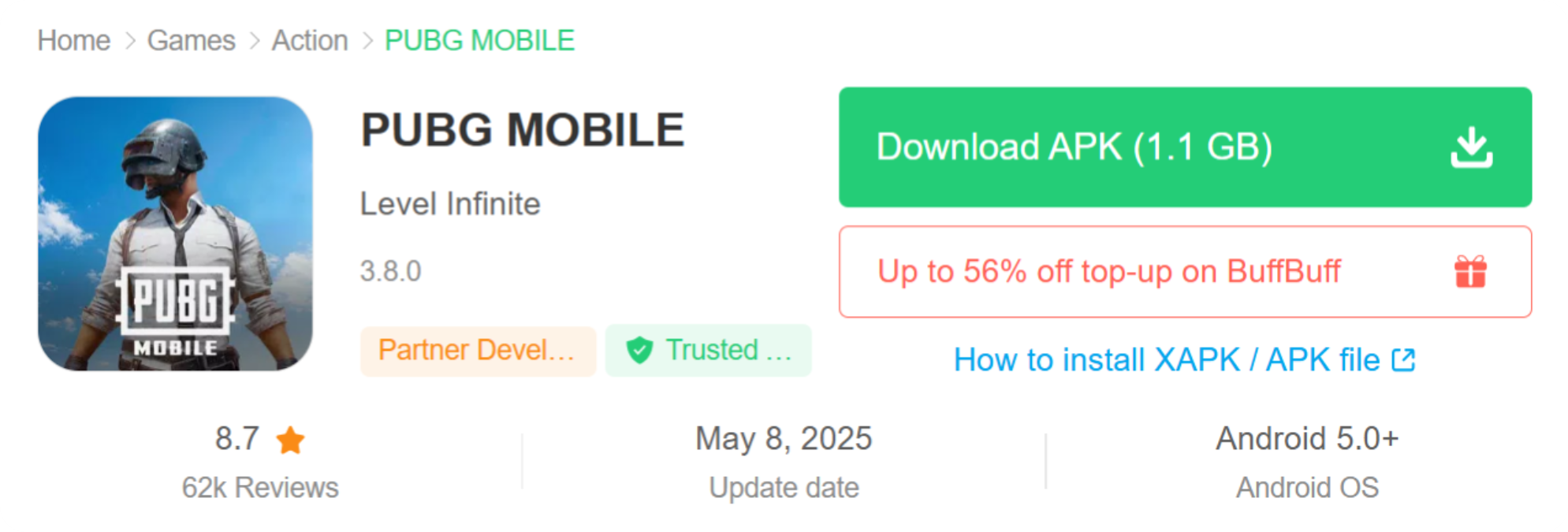 - Перейдите на страницу PUBG Mobile на APKPure.