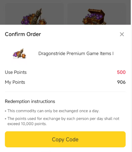 4. После успешного обмена вы получите код для получения внутриигровых предметов.