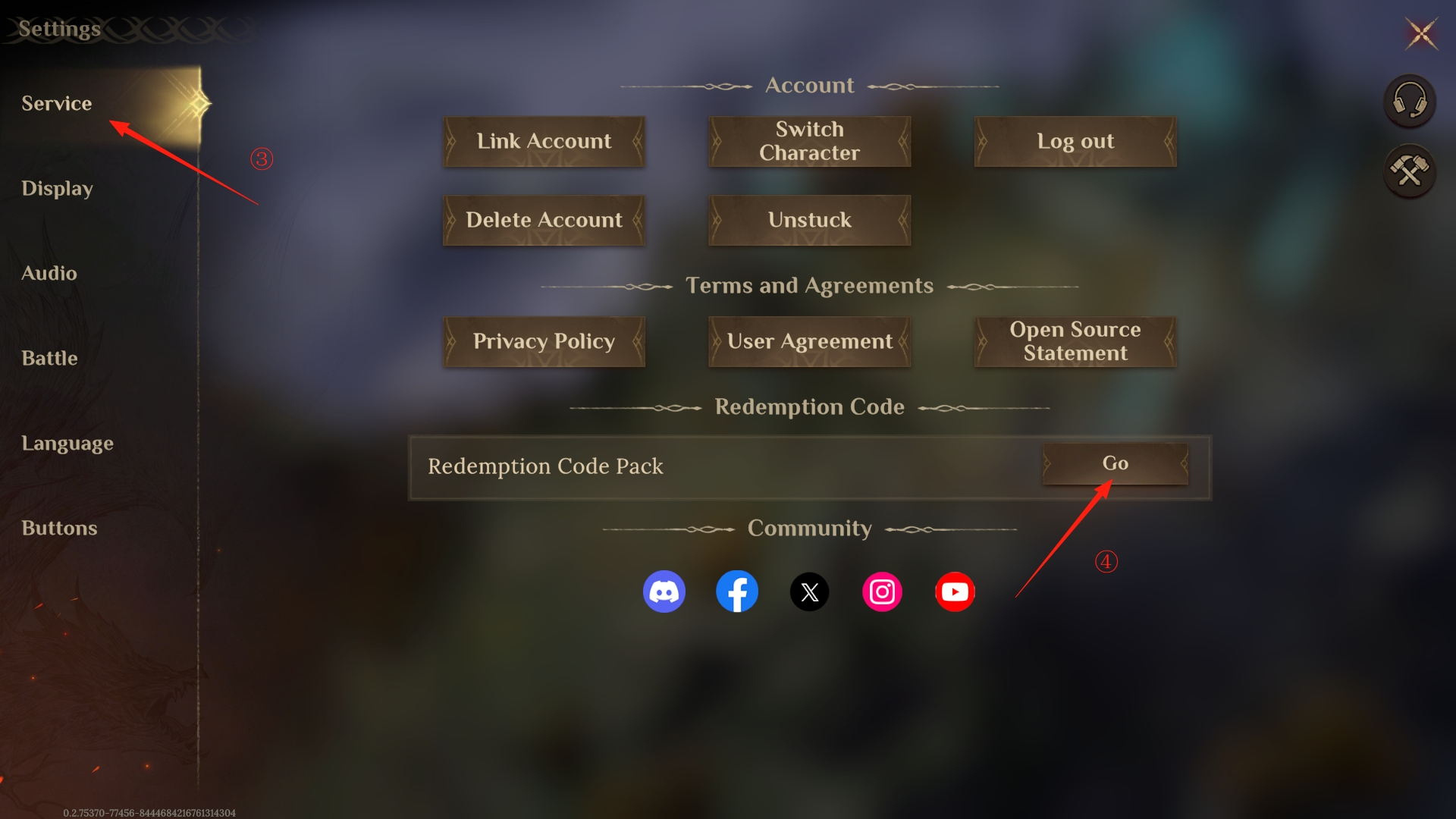 2. Перейдите в Сервис → Redemption Code Pack → Введите [Redemption Code], чтобы получить награду.