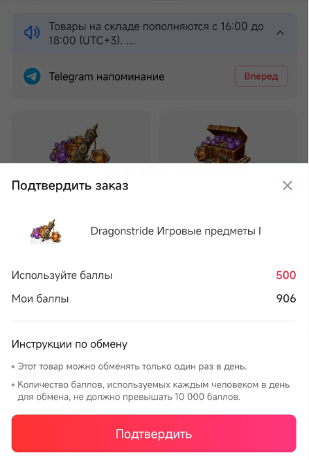 3. Просмотрите доступные наборы, выберите понравившийся, нажмите на него и подтвердите обмен нужного количества баллов.