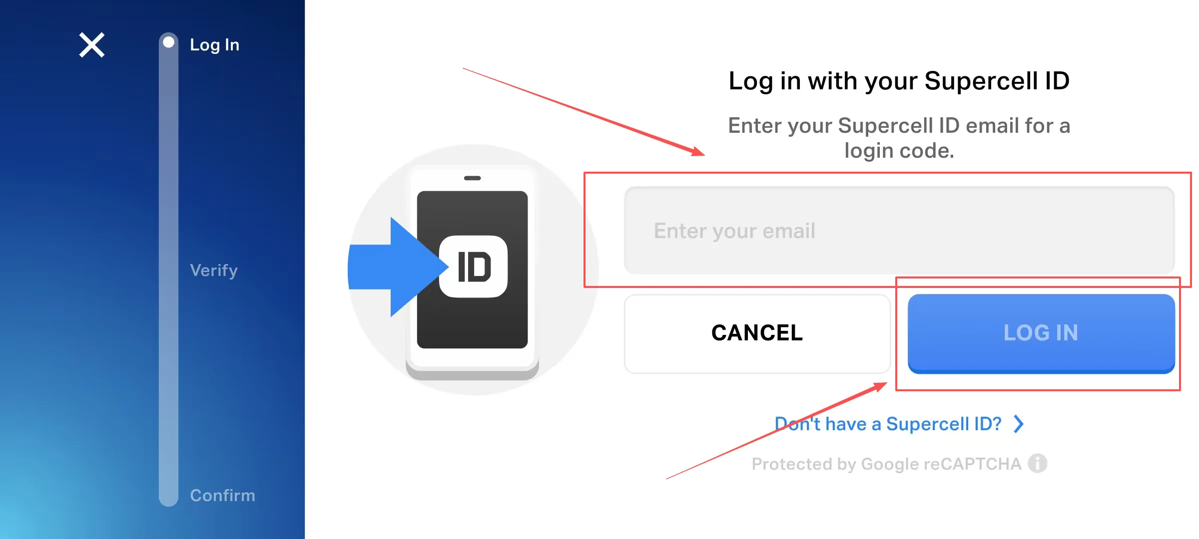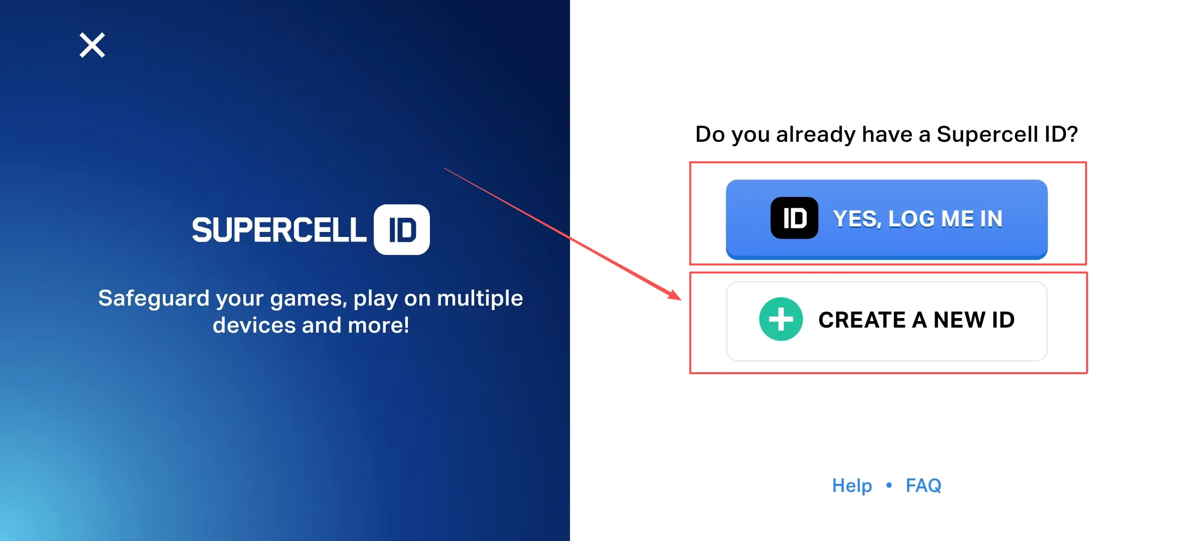 Если у вас нет Supercell ID, создайте его. Если есть, выберите "Да, войти".