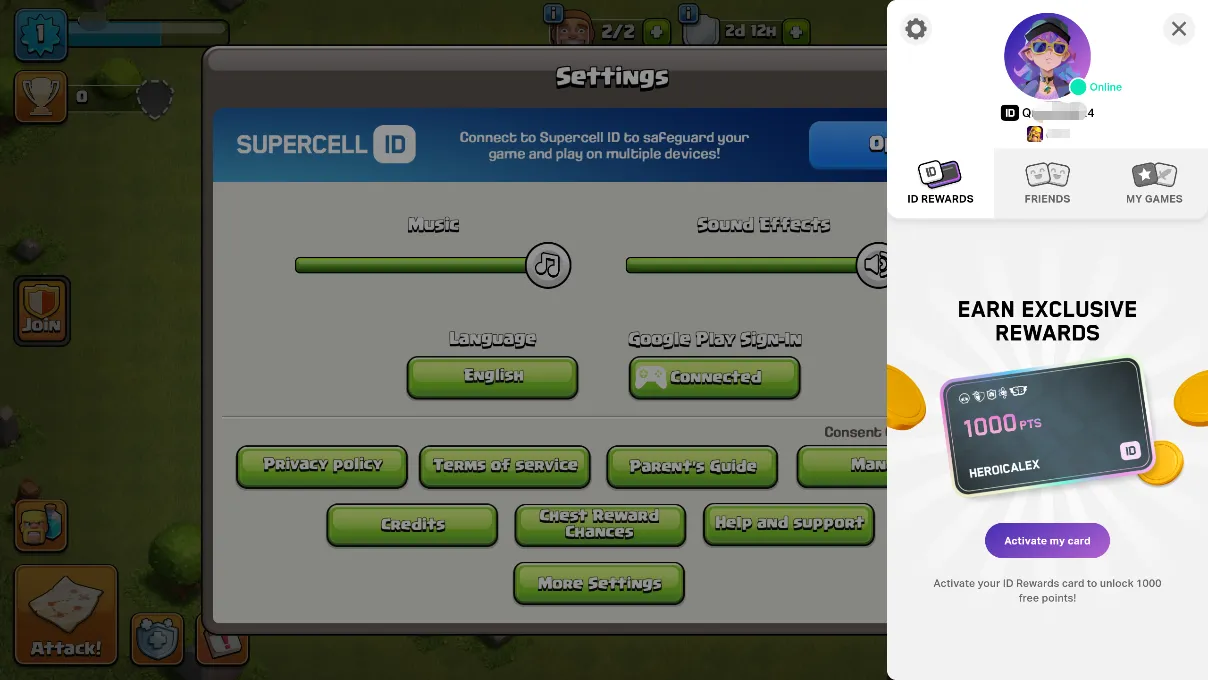 Готово! Теперь вы можете просматривать свой привязанный аккаунт Supercell ID.
