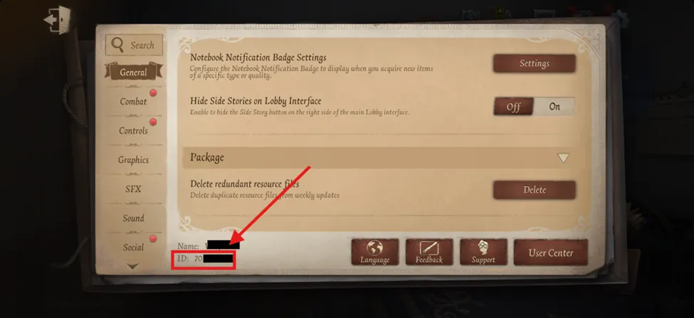 Шаг 4: На главной странице настроек вы увидите свое игровое имя и «ID», за которым следует строка из цифр/символов. Это ваш UID, необходимый для пополнения счета Identity V Echoes на BuffBuff!