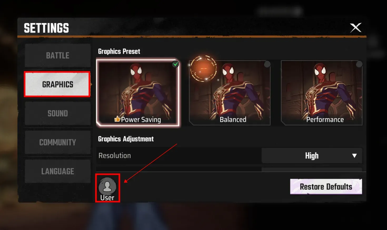 Шаг 2: Перейдите в ГРАФИКА > Пользователь.