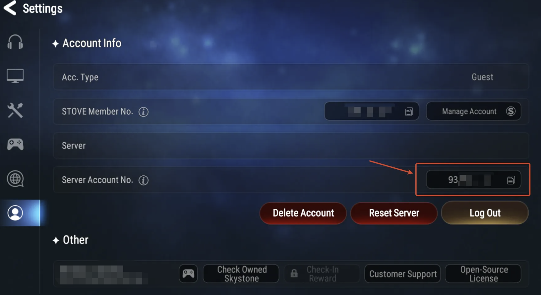 Server region (Asia, Global, Europe, Korea, Japan)