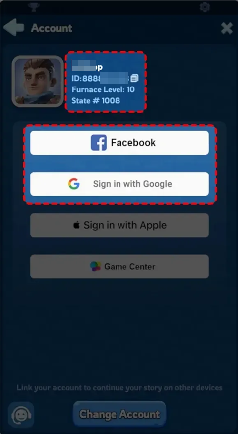 Whiteout Survival Bound Account (Facebook, Google)
